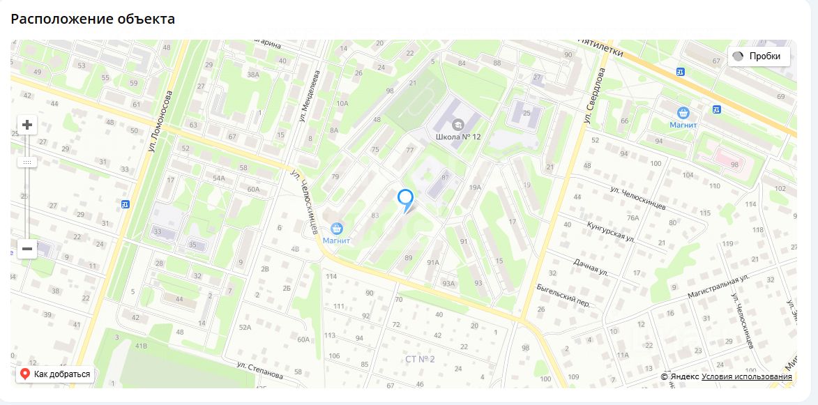 Развитая инфраструктура: В шаговой доступности находятся продуктовые магазины: Пятёрочка, Монетка, Магнит. Парикмахерские, Красное белое. Детский сад 73. Школа 12. Детские площадки. Парк комсомольский. Библиотека 12.