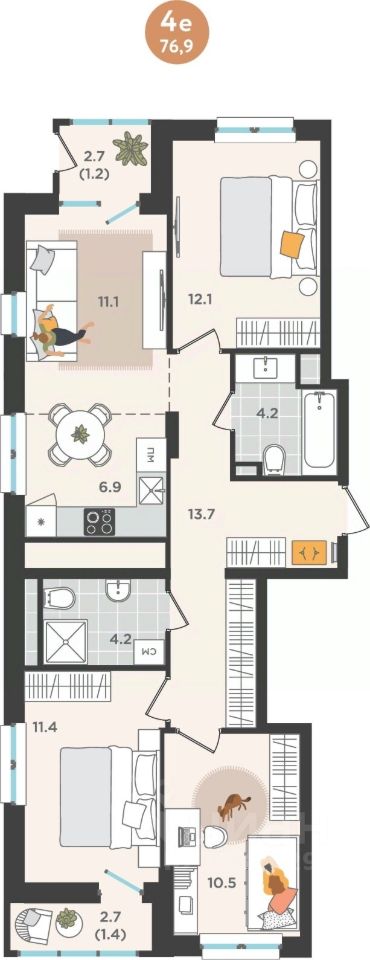 продам 4-к, Куфонина, 113 205 883 ₽