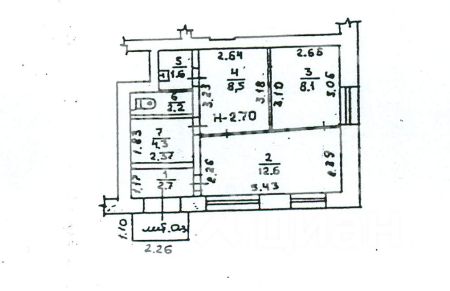 Площадь 40 кв.м. Высота потолков 2,7 м.