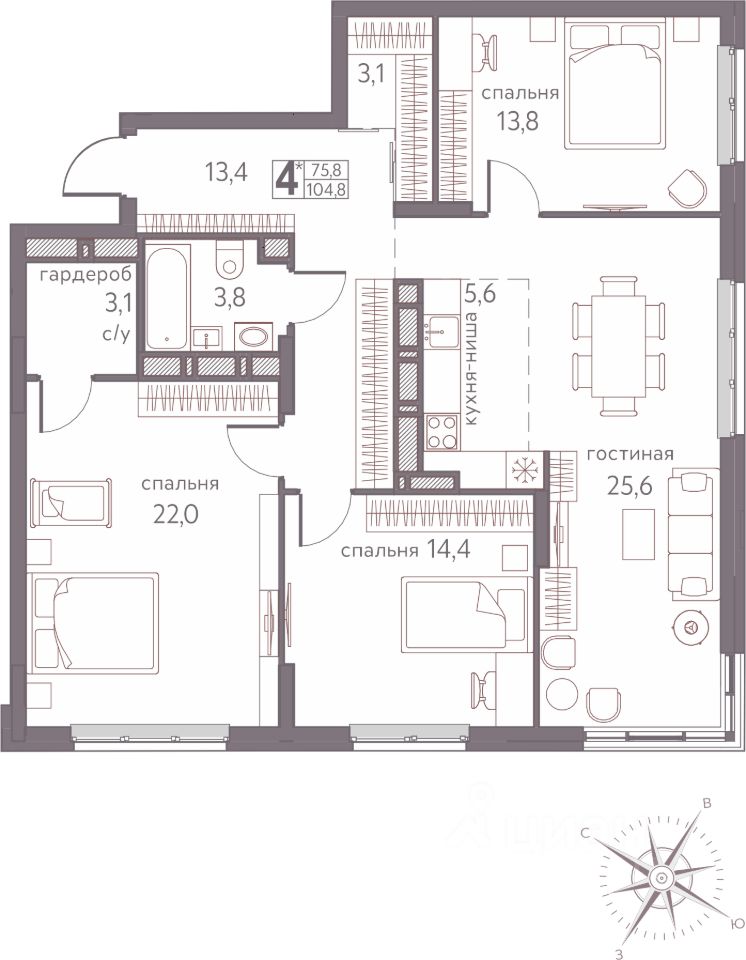 Продаётся студия в строящемся доме (Серебристая, 3А), срок сдачи: IV-кв. 2025, общей площадью 104.8 кв.м., на 17 этаже. Теплые кварталы ''Погода'' — это новый грандиозный проект от создателя Спортивного микрорайона ''Ива'', федерального застройщика ''Девелопмент-Юг'' .