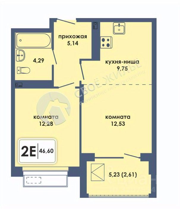 Общая площадь46,6 м2