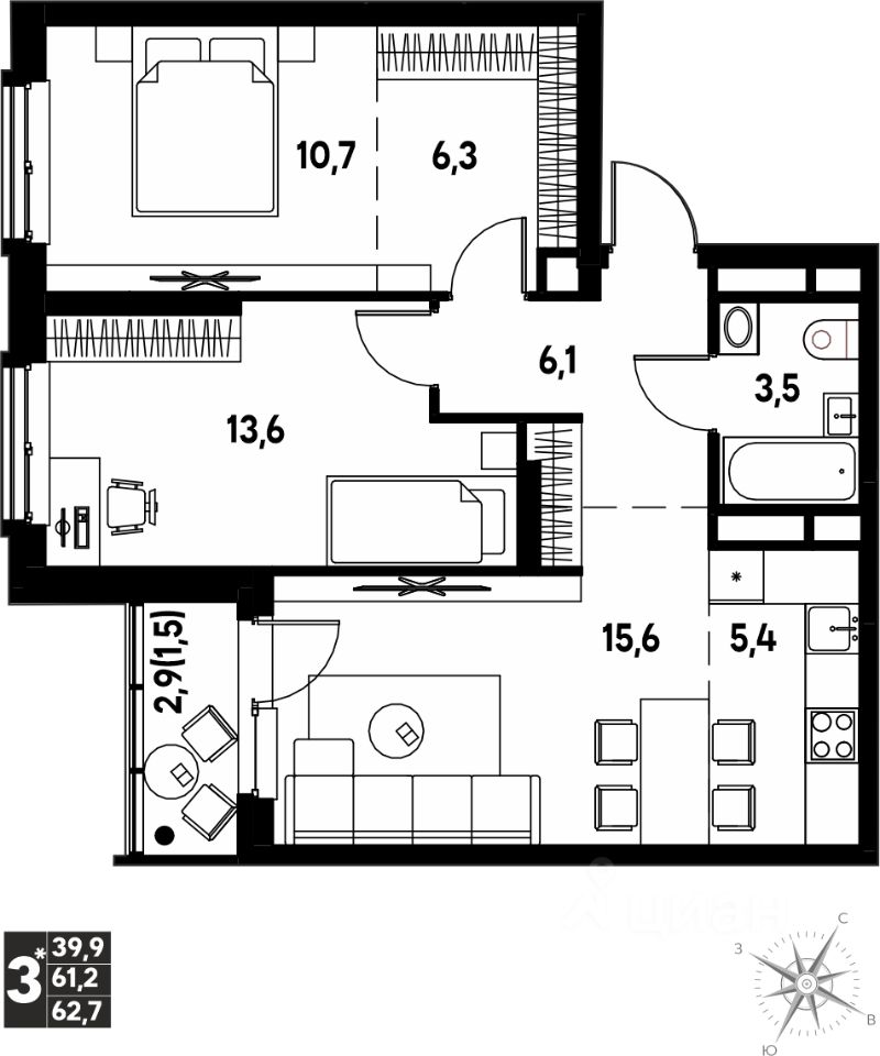 Продаётся студия в строящемся доме (Дягилева, 2), срок сдачи: I-кв. 2026, общей площадью 62.7 кв.м., на 9 этаже. Новый жилой комплекс ''Клубный пригород ''МЫ'' от застройщика ''Девелопмент-ЮГ'' расположен по адресу д. Кондратово, пр-т Дягилева, 4.