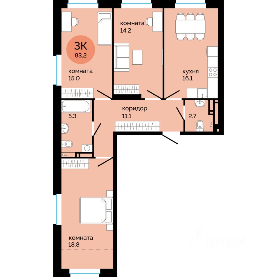 Квартира в ЖК ''Красное Яблоко'' — это ваше личное пространство для жизни, вдохновения и отдыха, где каждая деталь создана для вашего комфорта.