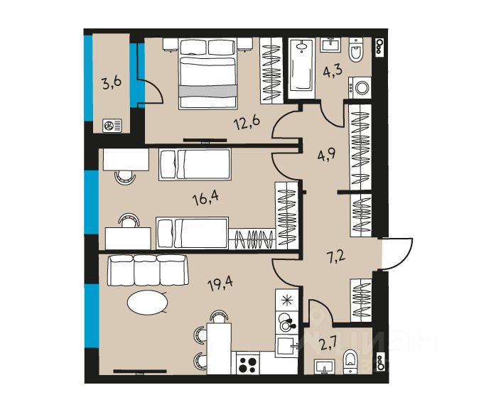 3-комнатная квартира 383