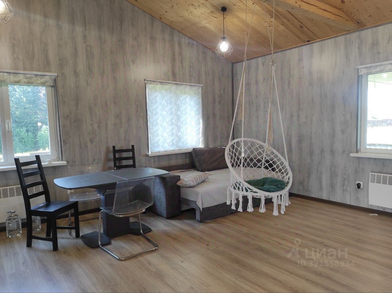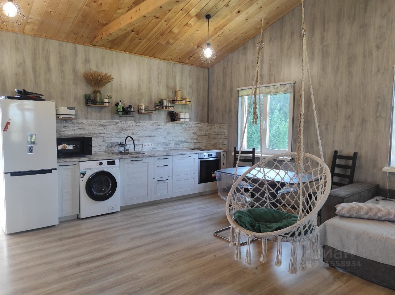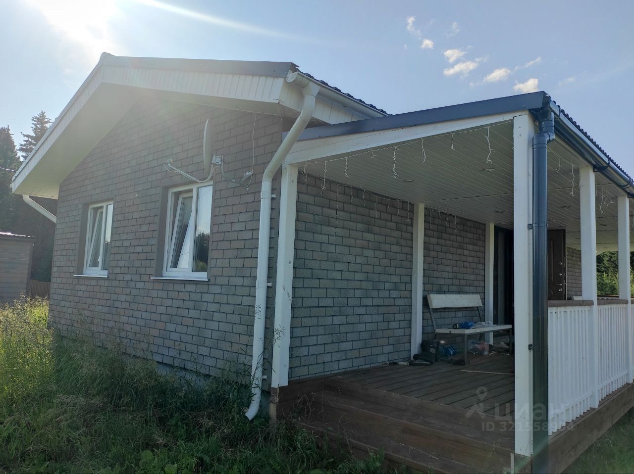 Обустроенный, качественно построенный каркасный дом 103 кв м с двумя террасами: одна с центрального входа 13 кв м, другая 30 кв м с выходом из гостиной.