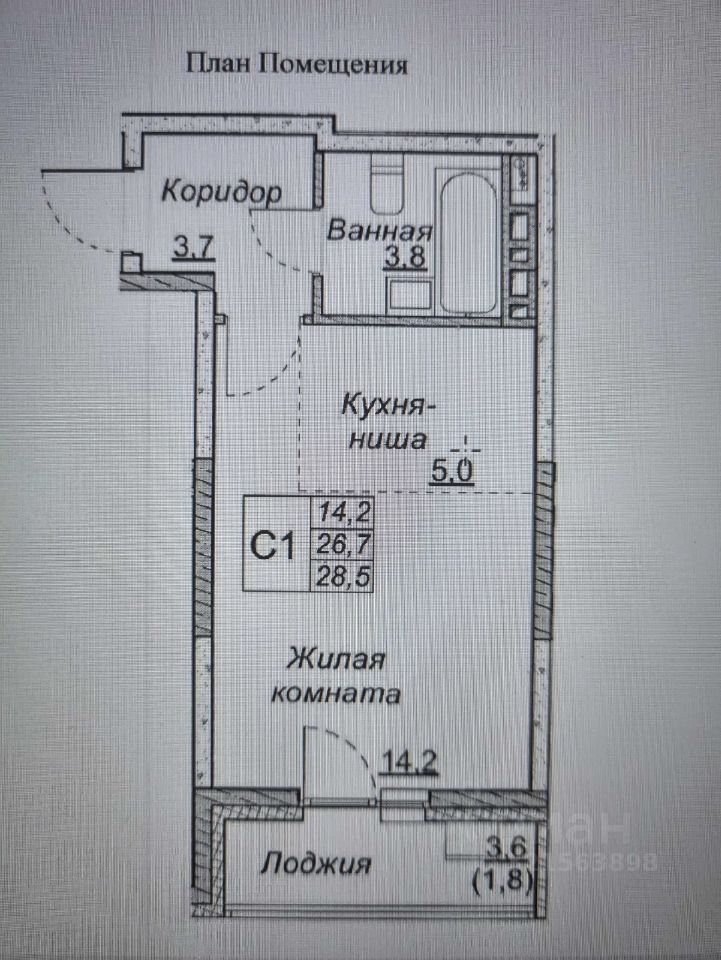 Отделка под ключ ''комфорт'' включена в стоимость. Общая площадь 28,5 кв.м, в т.ч. лоджия 1,8 кв.м, без учета лоджии 26,7 кв.м. Готовность дома 4 кв. 2026 года.