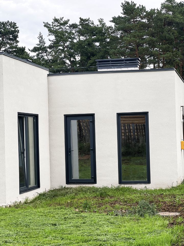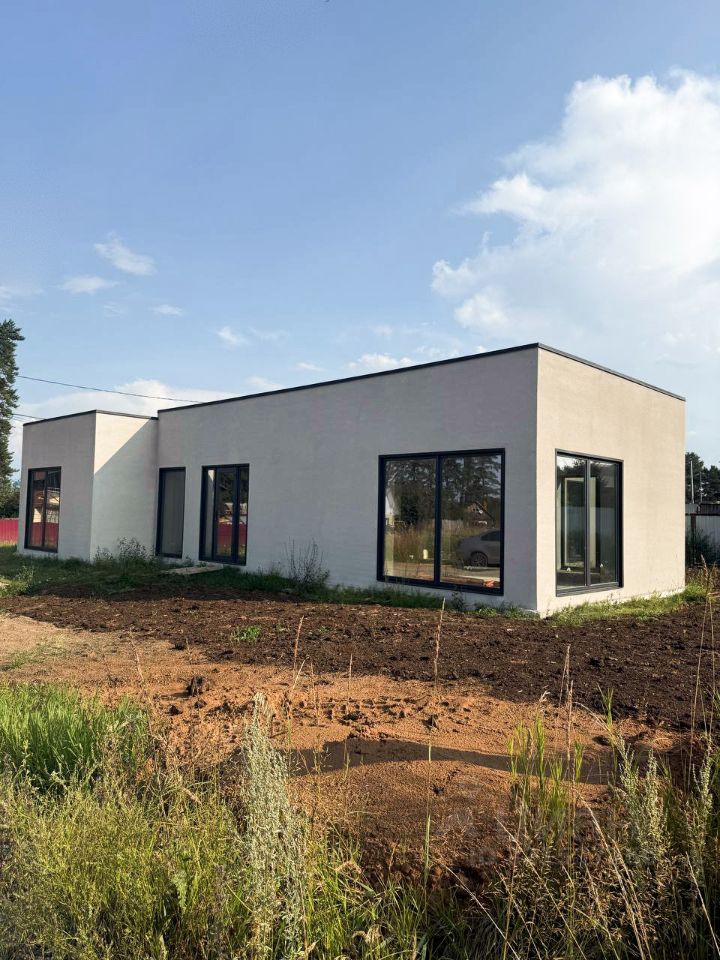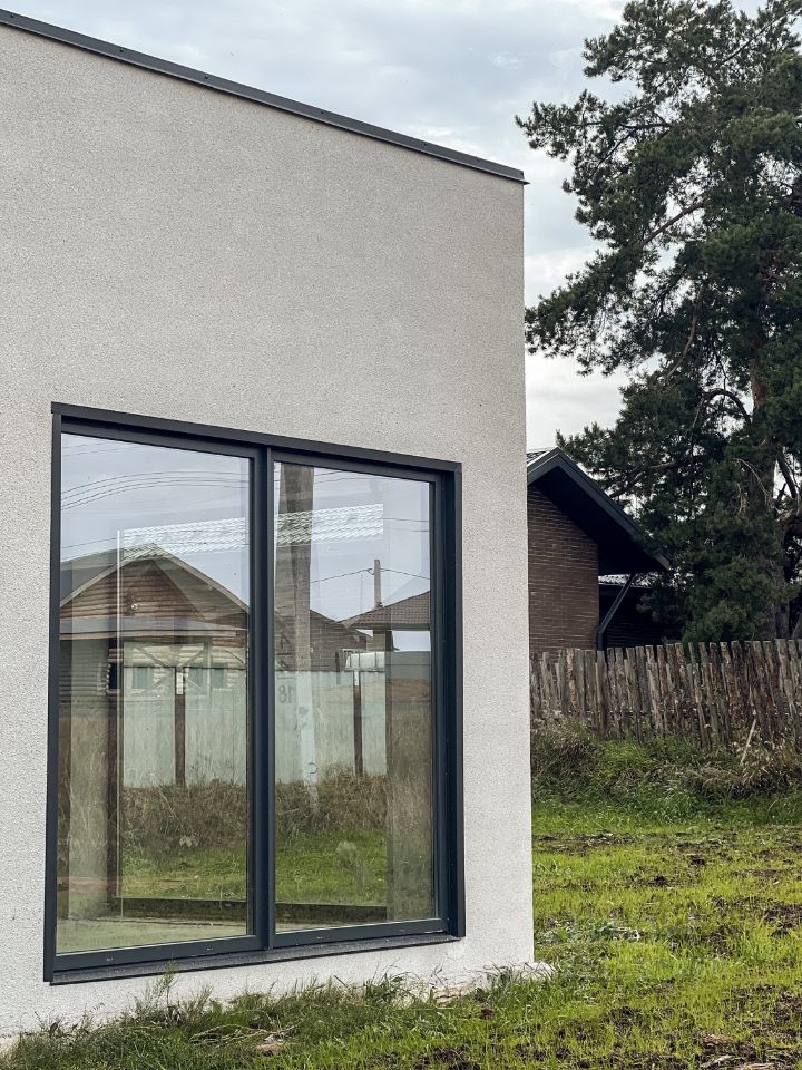 Дом 135 м², стиль минимализм: плоская кровля, большие остекления, логичная планировка — 3 спальни, 2 санузла, кухня-гостиная с выходом на участок. Инженерия завершена: газ, вода, электричество, канализация, тёплые полы. Стадия предчистовой — экономия времени и бюджета (нет переплаты за чужую отделку).