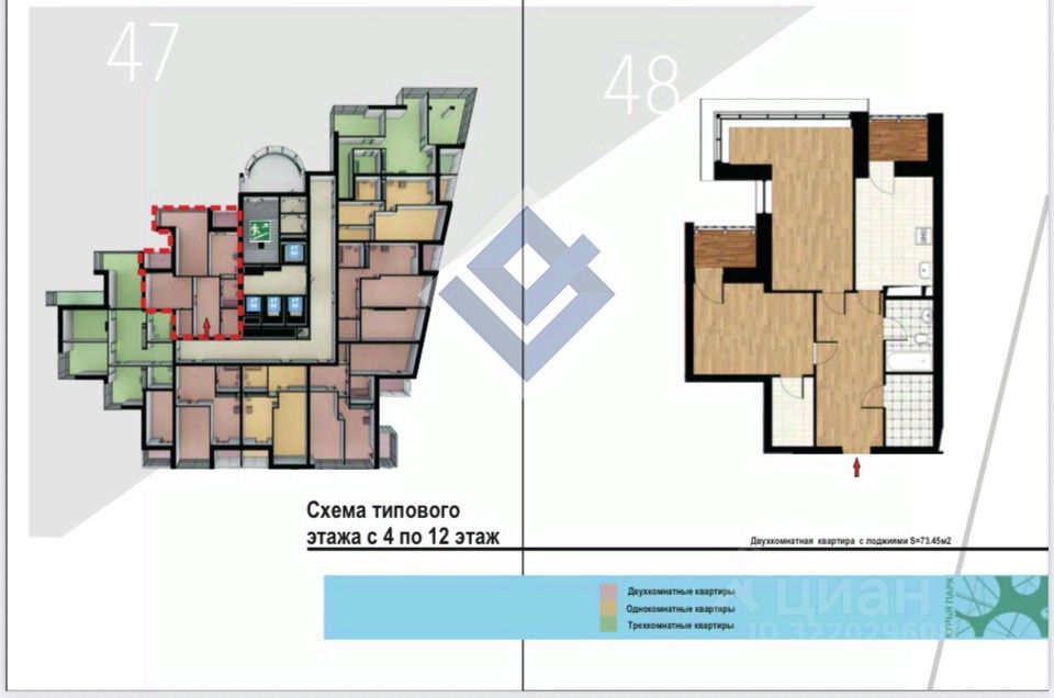 * Планировки квартир начинаются от 47 м2, что определяет соседство.