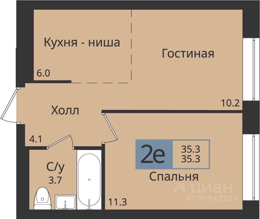 Общая площадь35,3 м2