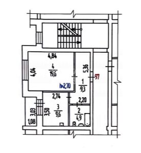 Общая площадь квартиры: 43,4 кв. м. Комната площадью: 19,6 кв.м. Кухня площадью: 9,6 кв.м. Санузел совмещенный, отделка на стенах и на полу - плитка. Лоджия застеклена, окна ПВХ. Окна выходят на солнечную сторону, во внутренний двор.