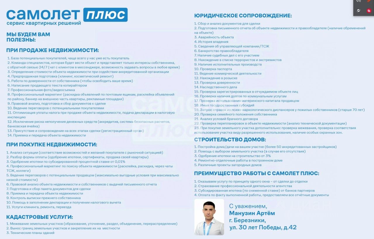 Один взрослый собственник, возможность быстрого выхода на сделку.