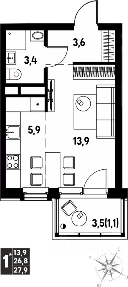 Продаётся студия в строящемся доме (Дягилева, 2), срок сдачи: I-кв. 2026, общей площадью 27.9 кв.м., на 2 этаже. Новый жилой комплекс ''Клубный пригород ''МЫ'' от застройщика ''Девелопмент-ЮГ'' расположен по адресу д. Кондратово, пр-т Дягилева, 4.