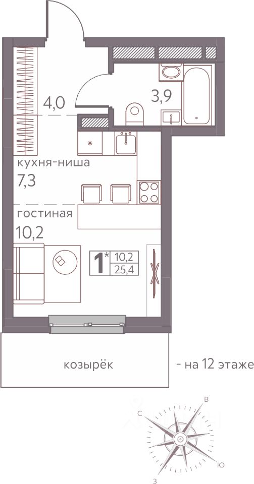 Продаётся студия в строящемся доме (Серебристая, 3), срок сдачи: III-кв. 2026, общей площадью 25.4 кв.м., на 12 этаже. Теплые кварталы ''Погода'' — это новый грандиозный проект от создателя Спортивного микрорайона ''Ива'', федерального застройщика ''Девелопмент-Юг'' .
