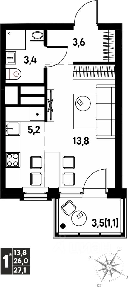 Продаётся студия в строящемся доме (Дягилева, 2), срок сдачи: I-кв. 2026, общей площадью 27.1 кв.м., на 13 этаже. Новый жилой комплекс ''Клубный пригород ''МЫ'' от застройщика ''Девелопмент-ЮГ'' расположен по адресу д. Кондратово, пр-т Дягилева, 4.
