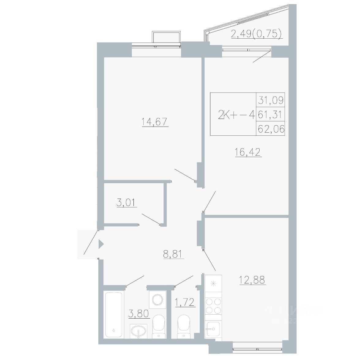 продам 2-к, Рионская, 4а10 300 000 ₽