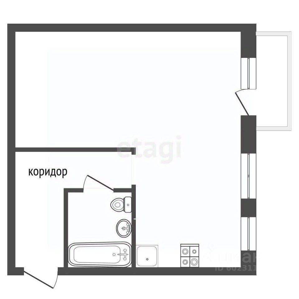 Общая площадь квартиры составляет 48.5 кв.м., кухня-гостиная ,санузел совмещенный, большой коридор, место под гардеробную.