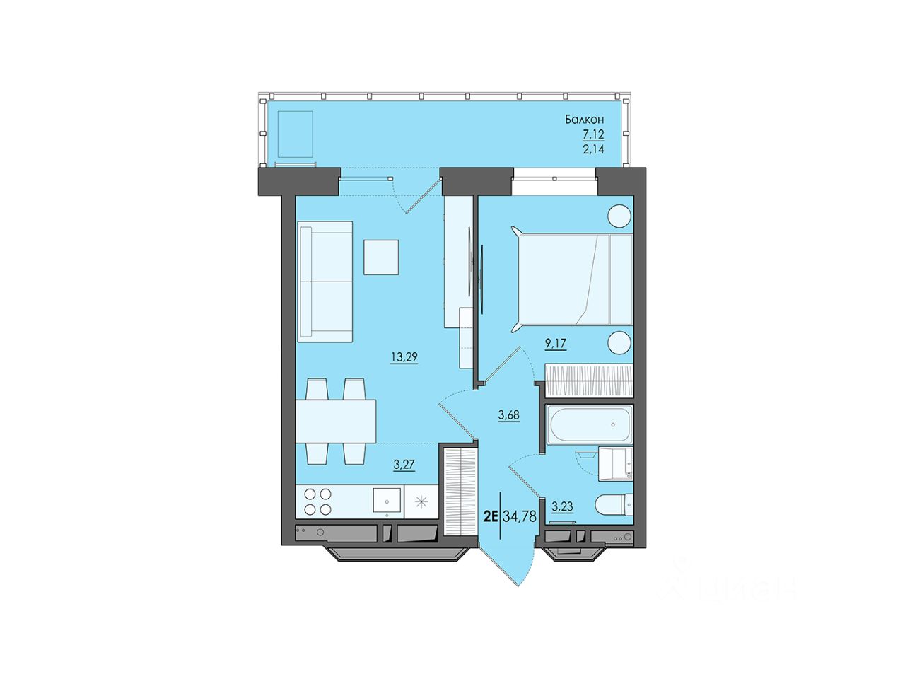 Общая площадь34,78 м2