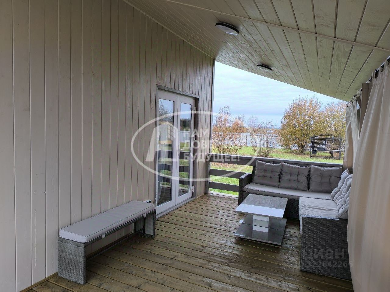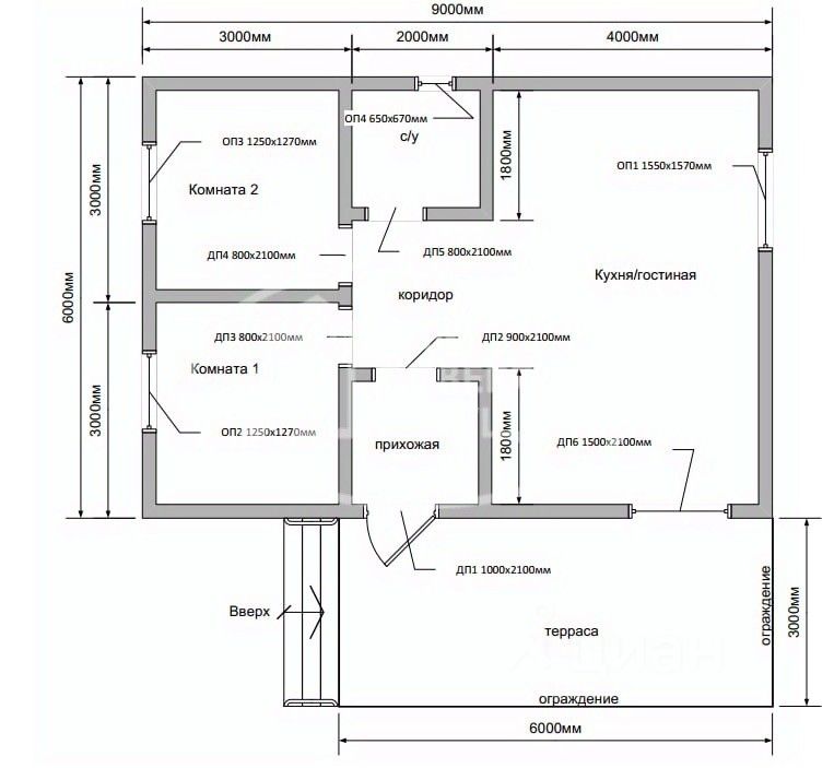 Большая кухня - гостиная с выходом на террасу, две спальни, санузел, прихожая.