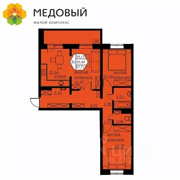 продам 3-к, Нифантова Геннадия Николаевича, 4б10 859 764 ₽