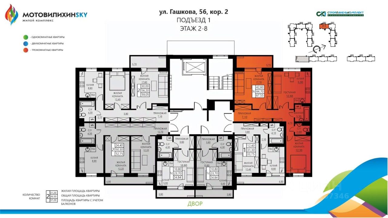 ЖК МотовилихинSKY - современный, новый микрорайон с развитой инфраструктурой, состоящий только из новостроек. 9-17-этажные панельные дома 97 серии возводятся кварталами на территории 22 Га. 17 домов этого жилого комплекса уже сданы, строится еще 3 дома, в них располагается вся необходимая инфраструктура: 3 крупных сетевых магазина, стоматологический кабинет, модная парикмахерская и ногтевой сервис. В шаговой доступности: гимназия, школа, детский сад (с прикреплением по прописке в ЖК МотовилихинскийSKY) В самом комплексе новый современный детский сад! Остановочный пункт с маршрутами в любой конец города. Просторные парковки для жителей места хватит всем! А какие детские площадки! Собственная котельная под микрорайон.