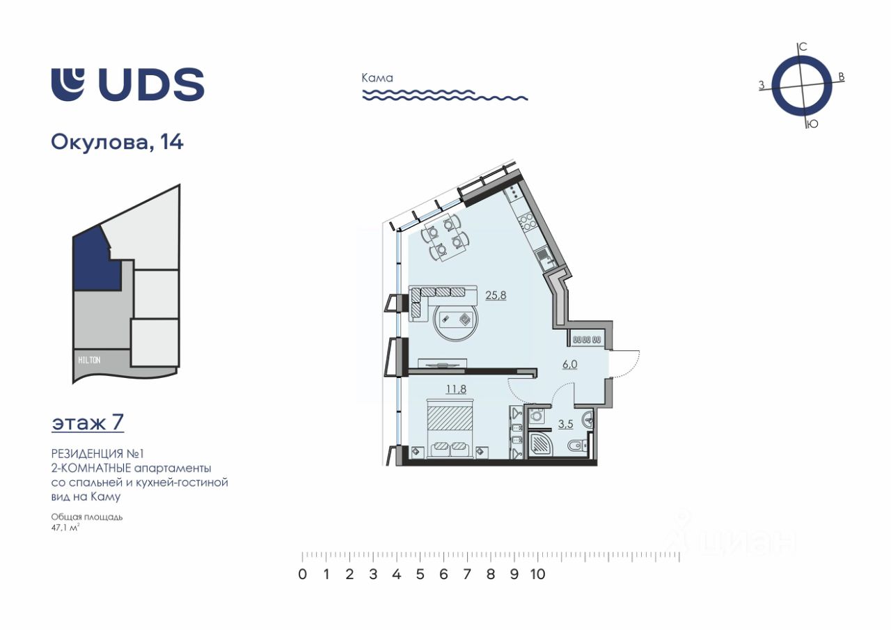 Апартаменты с панорамными видами на Каму и аллеи сада им. Гоголя — пространство для личной перезагрузки и вдохновения. Здесь можно позволить себе редкую роскошь — смотреть на реку и думать о будущем.