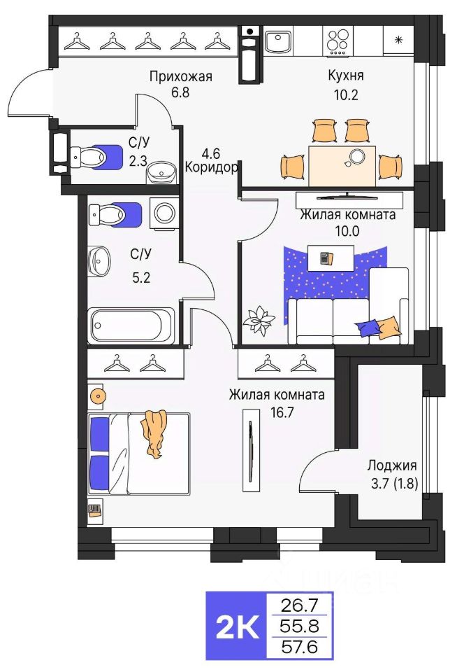 В объявление указана цена за квартиру с черновой отделкой ________________ *Застройщик ООО СЗ ''СТМ''. Проектная декларация на сайте наш.дом.рф. Не является публичной офертой. Окраска и архитектура модели здания, а также придомовая территория может отличаться от фактической.