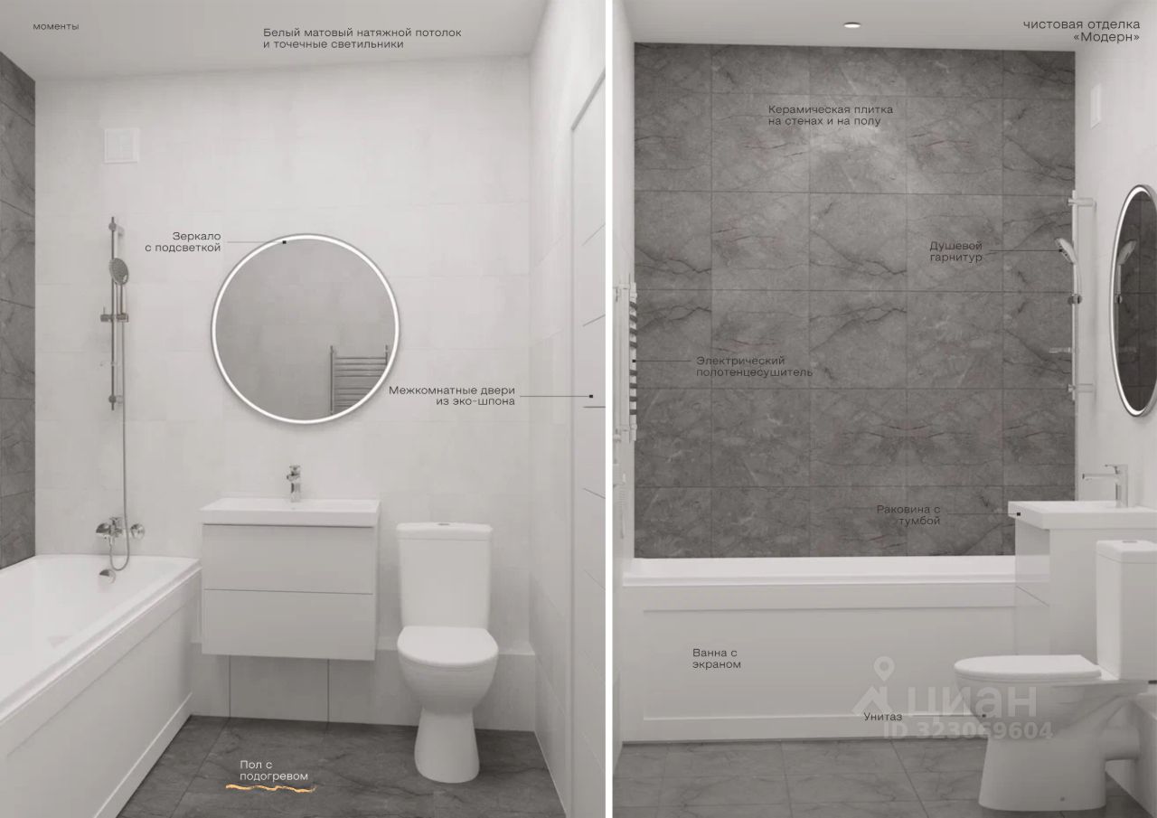 В Живых кварталах Моменты представлены квартиры с тремя видами отделки: черновая и чистовая в двух вариантах ''Классика'' и ''Модерн''.