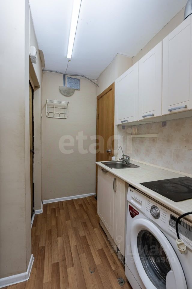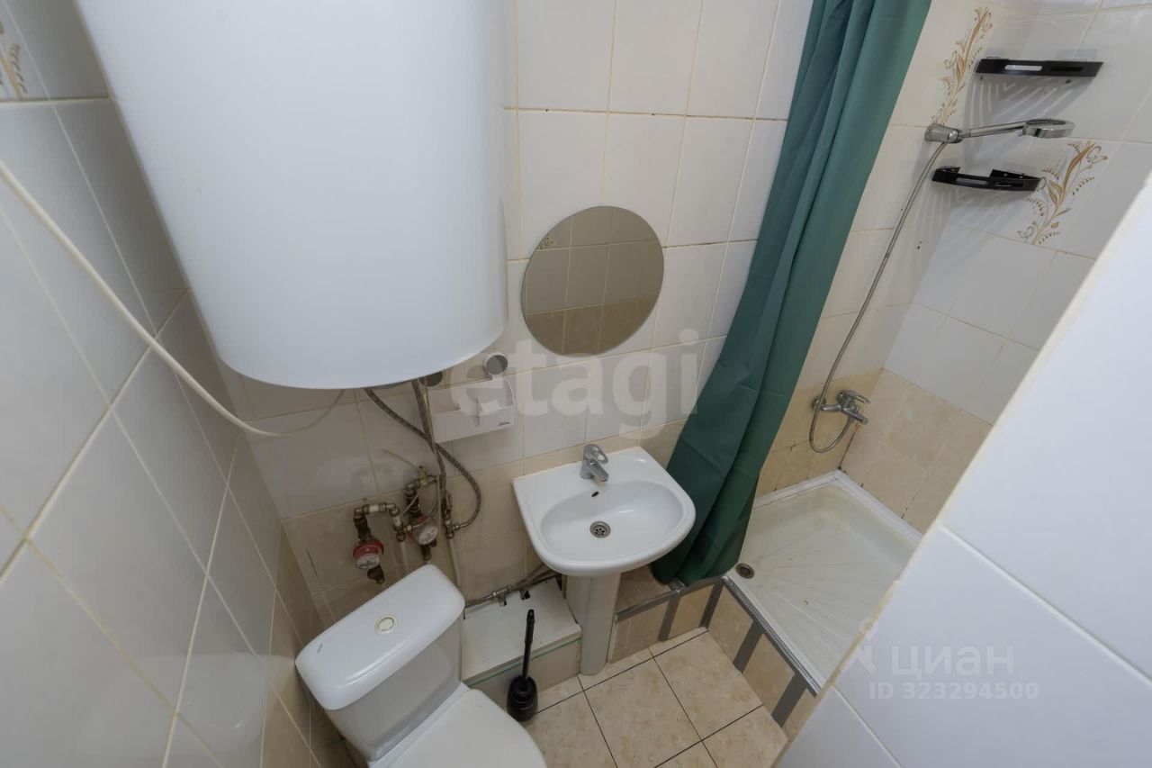 В продаже квартира студия. Площадь 16.8 метра квадратных. Есть небольшая кухонная зона, свой санузел, и душ.