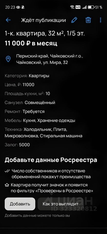 Дата публикации объявления