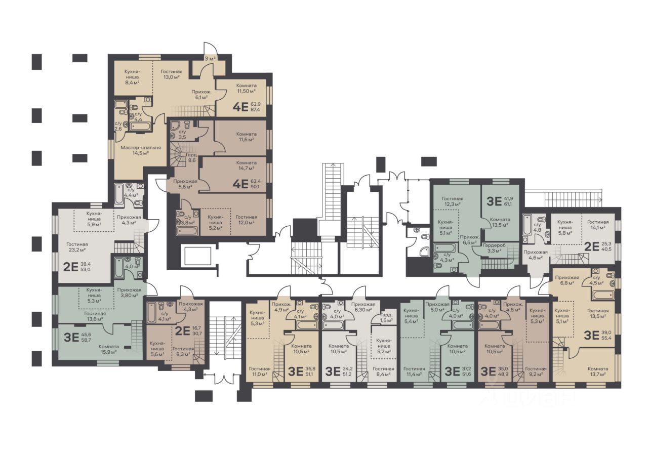 Разнообразные планировки от полногабаритных студий и классических двухкомнатных до уникальных форматов с антресольным этажом и потолками до 5 метров.