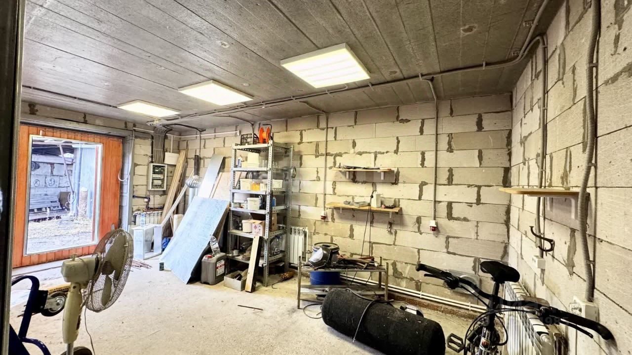 Преимущества и Коммуникации: • Материал: Пеноблок (обеспечивает хорошую теплоизоляцию). • Отопление: Электрическое. • Коммуникации: Подведено электричество, скважина (вода), канализация. • Этажность: Двухэтажный бокс. • Использование: Ранее использовался как цех по работе с металлом. Второй этаж использовался как жилая квартира. Идеально подходит для переоборудования под баню или коммерческое помещение. • Дополнительно: Рядом расположено холодное помещение, которое использовалось как склад.