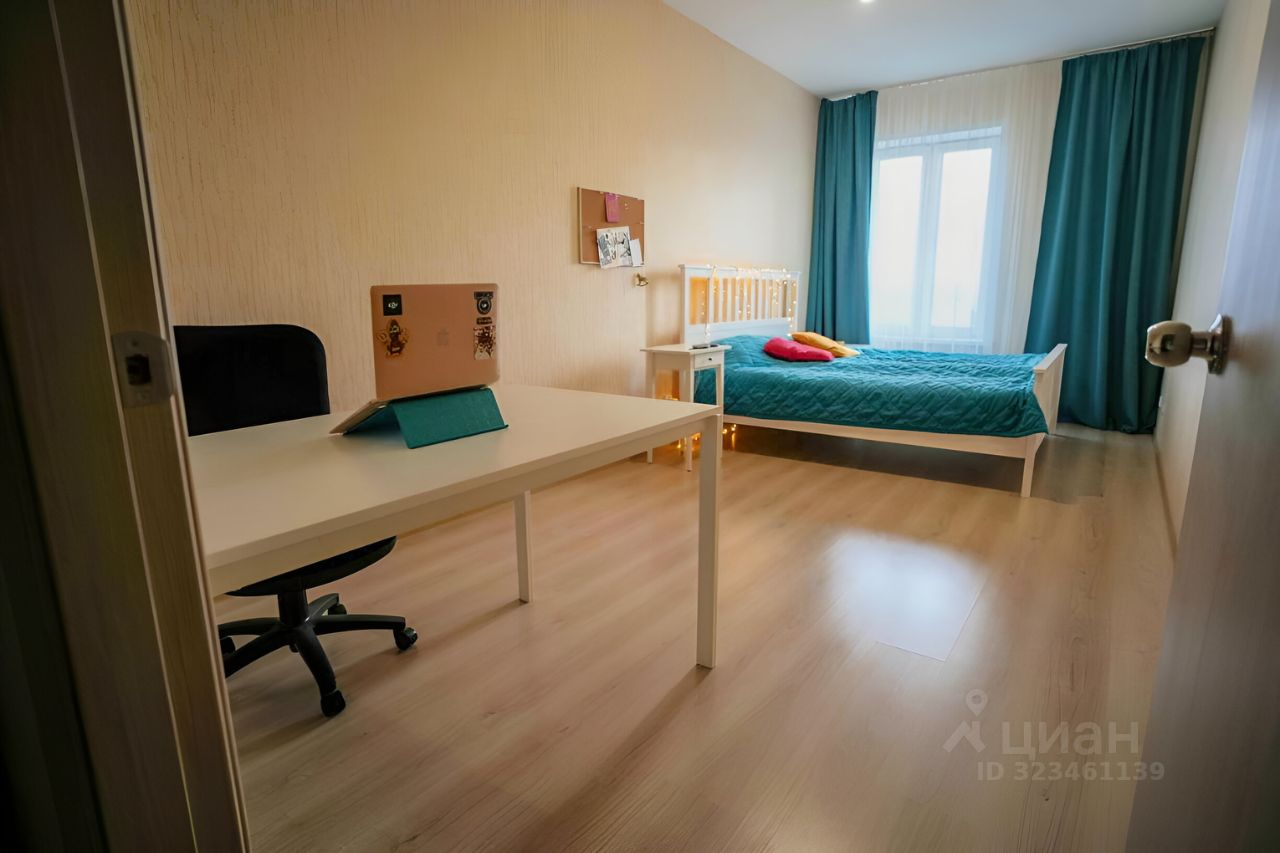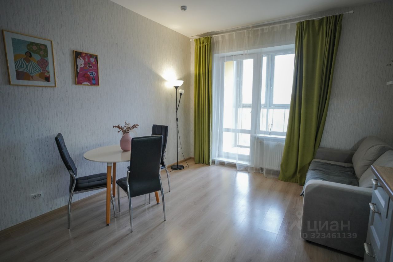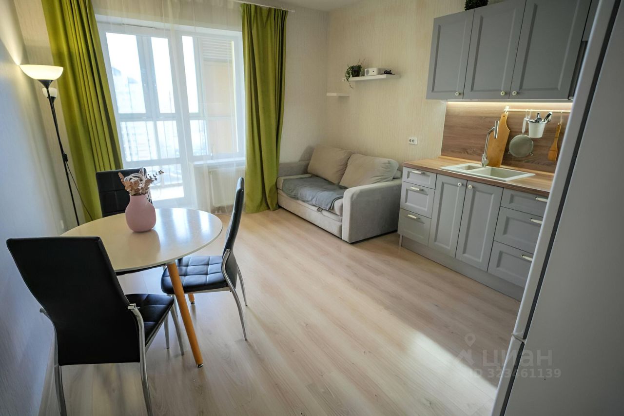 Просторная кухня-гостиная + жилая комната. Есть оборудованная гардеробная и балкон.