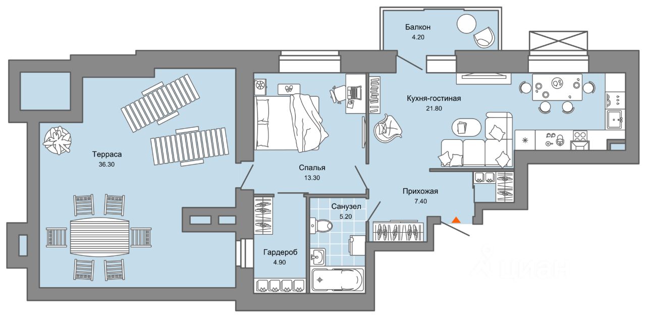 Особенность планировки - собственная терраса, ощутите преимущества загородного отдыха и полного единения с окружающей Вас красотой с видом на гладь воды Камы.