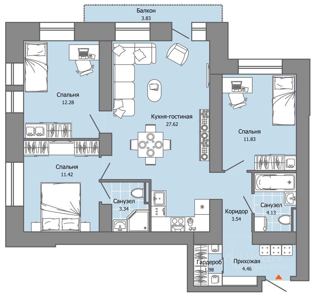 В новом жилом комплексе комфорт+ класса ''Камаполис'', расположенном на берегу реки Камы, продается 3-комнатная квартира площадью 82.00 кв. м. Квартира находится в 4 доме. Девелопер проекта - ''Железно''.