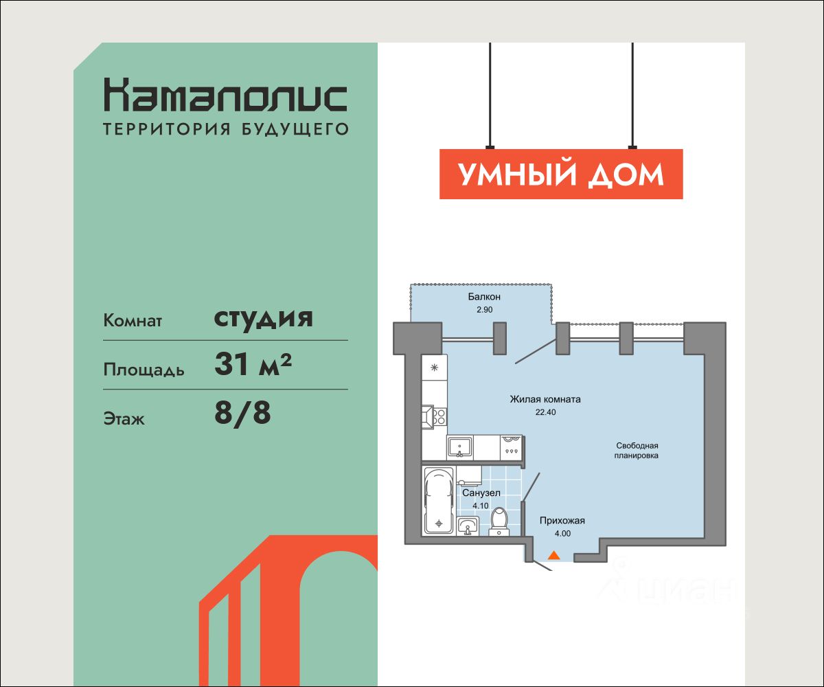 В новом жилом комплексе комфорт+ класса ''Камаполис'', расположенном на берегу реки Камы, продается студия площадью 31.00 кв. м. с предчистовой отделкой. Квартира находится в 3 доме. Девелопер проекта - ''Железно''.
