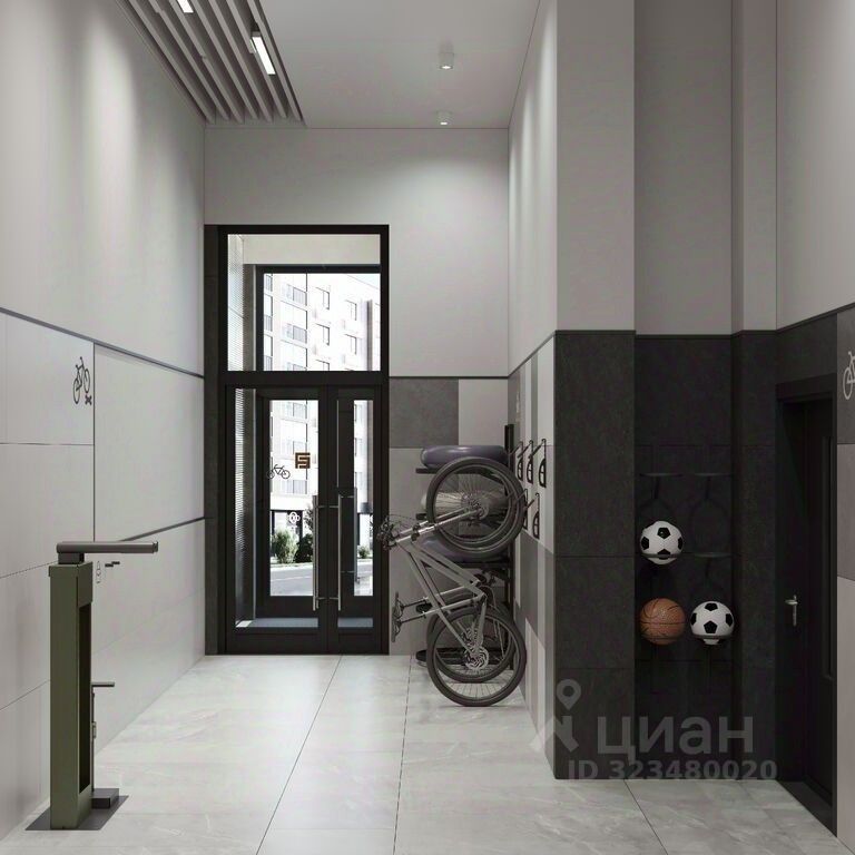 Концептуальные лобби Концепция проекта продолжается интерьером лобби. Здесь преобладают естественные оттенки и текстуры, а мебель выполнена из экологичных материалов. Для удобства жителей созданы собственные колясочные и велосипедные, а для заботы о домашних любимцах предусмотрена лапомойка.