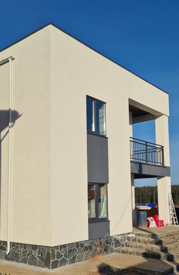 Представляем Вам современный дом С ТЕРРАСОЙ НА КРОВЛЕ! Льготная ипотека, персональная рассрочка (график платежей). КОНСТРУКТИВНОЕ РЕШЕНИЕ: 1. ФУНДАМЕНТ: Монолитный ж/б ростверк, буронабивные сваи глубиной 4,5м, с последующей обратной отсыпкой песчано-гравийной смесью с устройством теплового контура из пеноплекса и устройством монолитной ж/б плиты. 2. НАРУЖНЫЕ СТЕНЫ: Газобетонный блок ''СОТАБЛОК''ПЗСП D500 б=400мм. Дополнительное утепление фасада базальтовым утеплителем б=50мм. Отделка фасада декоративная штукатурка ''Короед''. 3. ПЕРЕГОРОДКИ: кирпич полнотелый одинарный 120мм, блок перегородочный 100мм ПЗСП. 4. ПЕРЕКРЫТИЯ: Плиты перекрытия ж/б пустотные. Высота этажа 3,1м. 5. КРОВЛЯ эксплуатируемая: плоская наплавляемая Техноэласт. 6. ОКНА, ДВЕРИ: 5-ти камерные оконные конструкции ламинированные цвет ''Графит''. Наружные двери стальные антивандальные утепленные с двойным терморазрывом и магнитным уплотнителем. ИНЖЕНЕРНЫЕ СЕТИ: 1. Электричество 15 кВт/ 380 В +. 2. Водоснабжение индивидуальная скважина +. 3. Канализация септик +. 4. Газоснабжение +. 5. Заземление +. 6. Отопление газовое - котел газовый с выносной панелью BAXI Luna-3 Comfort 1.240 Fi +. 7. Горячее водоснабжение - бойлер косвенного нагрева Royal Thermo AQUATEC INOX-F 100 /Газ/. 7. Слаботочные сети под домофон, интернет +. 8. Вентиляция +. ВНУТРЕННЯЯ ОТДЕЛКА: 1. Места общего пользования и жилые комнаты - стяжка+. 2. Котельная - чистовая +. 3. Лестничная клетка, санузлы - пред чистовая +. БЛАГОУСТРОЙСТВО: 1. Въезд - бетонное покрытие +. 2. Отмостка +. 3. Цоколь - камень +. 4. Забор по главному фасаду - евро штакетник +.