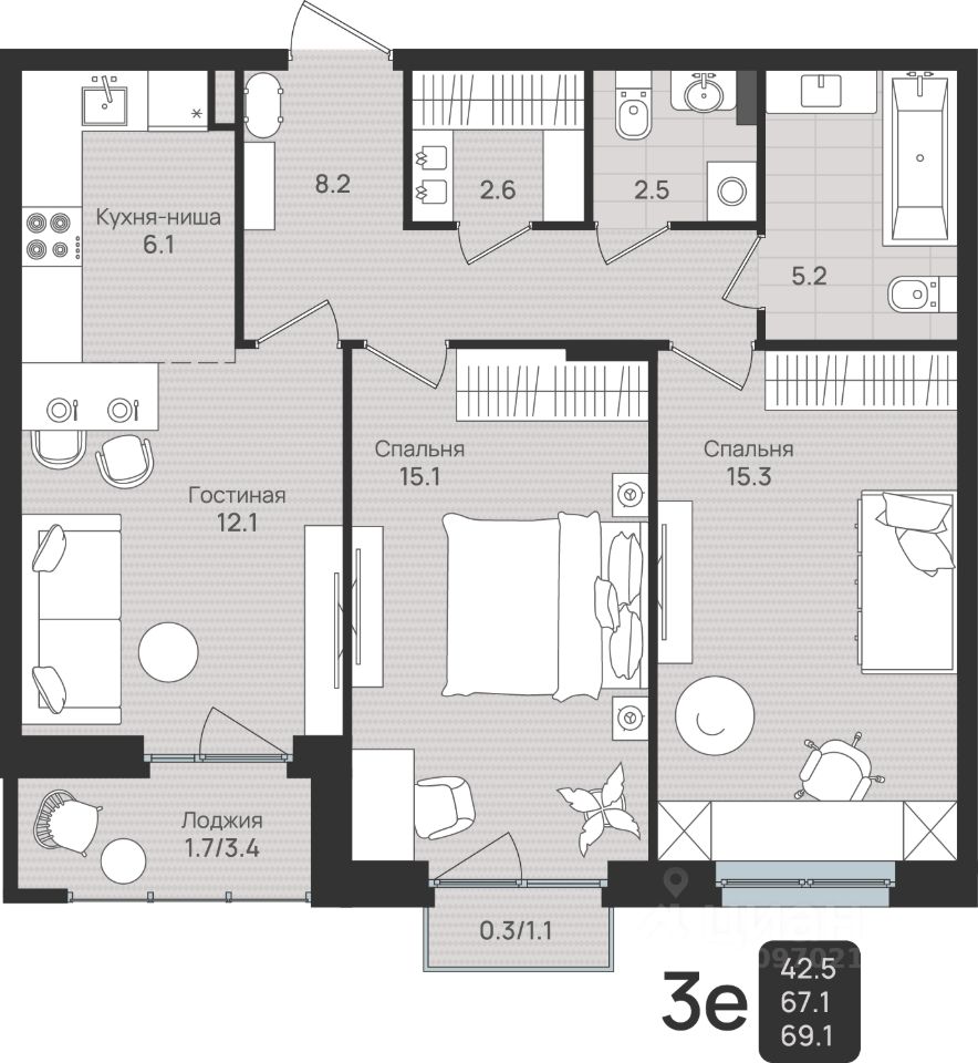 Общая площадь69,1 м2