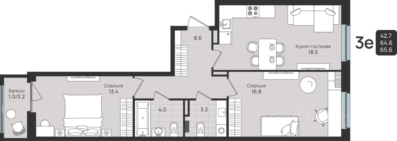 Общая площадь65,6 м2