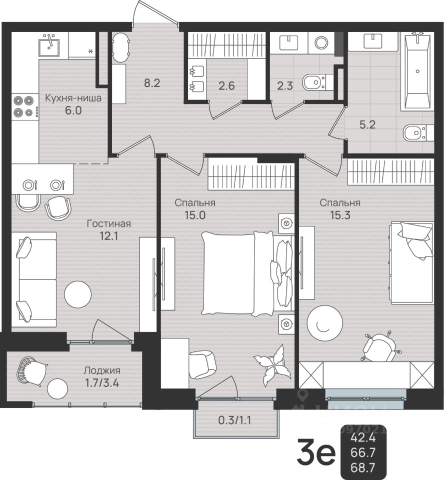 Общая площадь68,7 м2