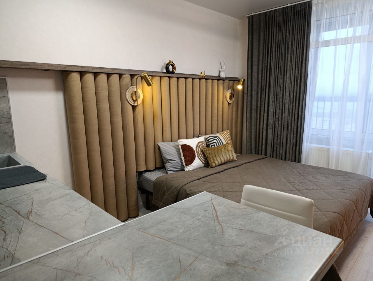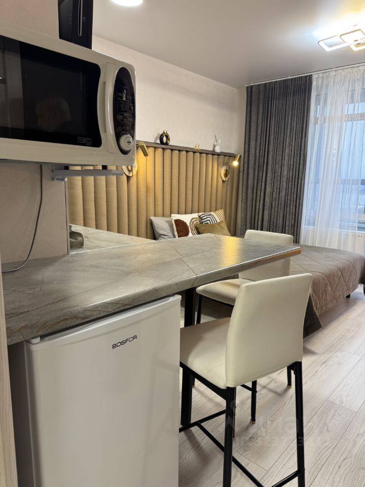 Просторная и уютная студия с новым дизайнерским ремонтом в современном ЖК Ясно, где нет шума и суеты мегаполиса. Здесь вы найдете гармонию комфорта и спокойствия, где каждая деталь продумана для вашего удобства — это лучшее решение как для семейного отпуска, так и для продуктивной командировки или незабываемого романтического вечера.