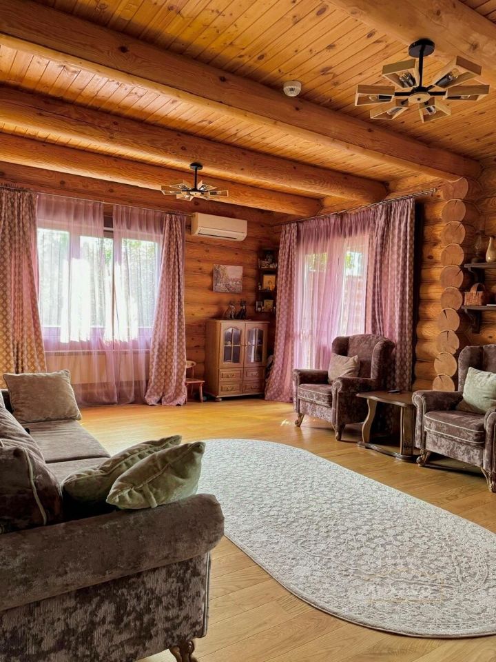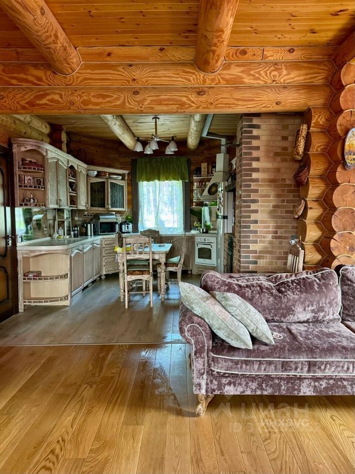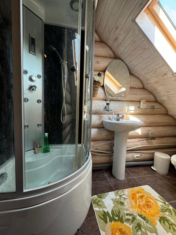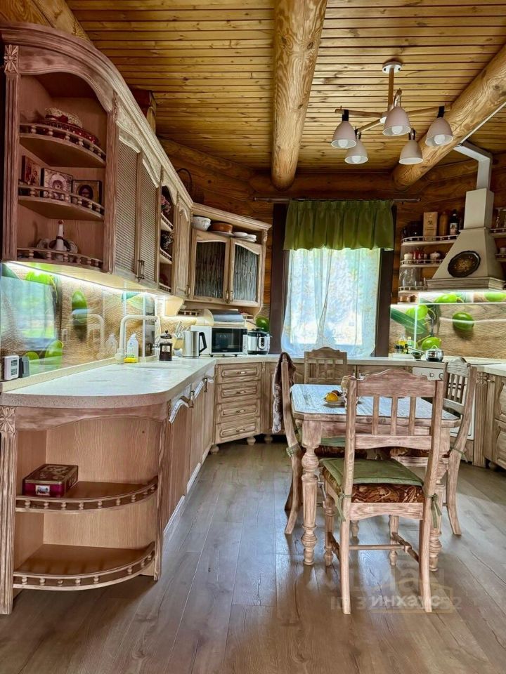 Дом из оцилиндрованного бревна, атмосферный, уютный, в охотничьем стиле. На первом этаже просторная кухня-гостиная, с выходом на террасу, с террасу открывается шикарный вид на Каму. Так же на первом этаже сан.узел, и комната отдыха. На втром этаже две спальни и сан.узел. В цокольном этаже дома гараж на 2машины и место для хранения садовой техники.