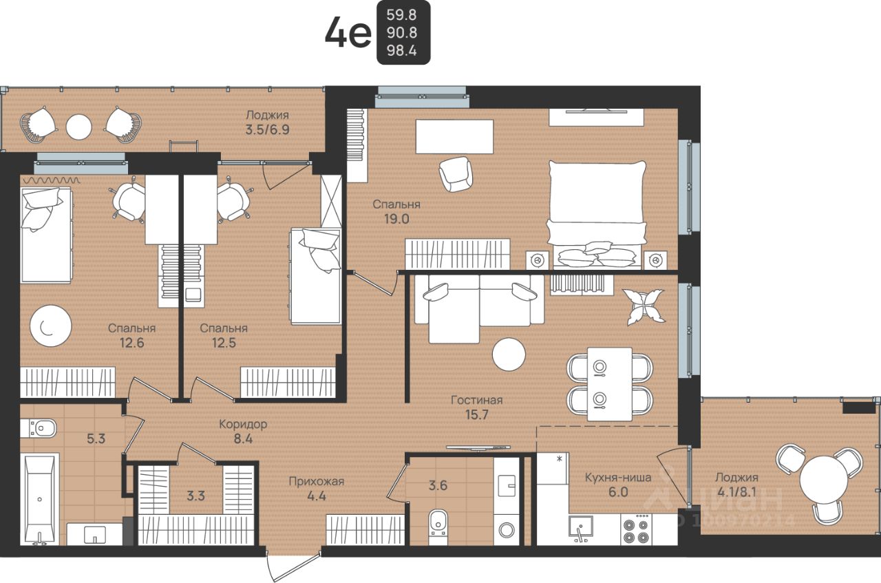 Общая площадь98,4 м2