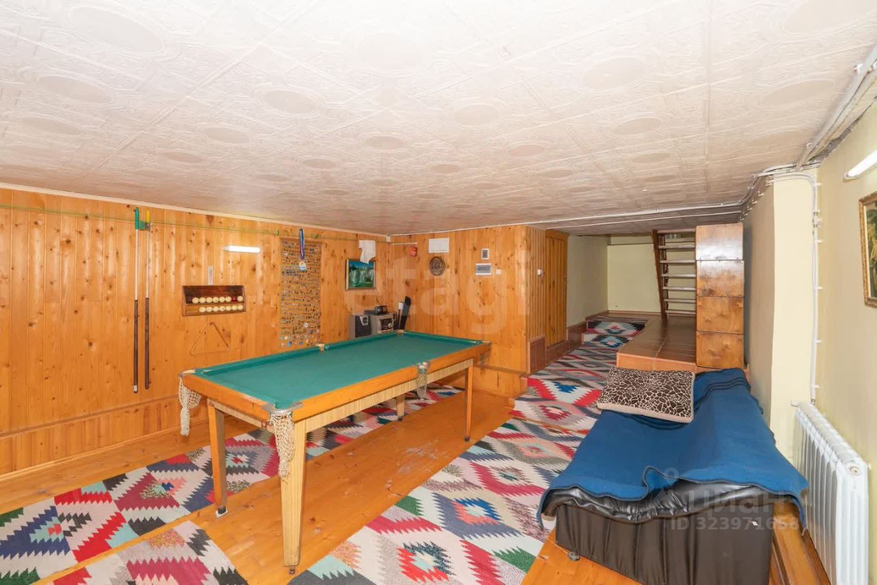Трехэтажная планировка включает пять комнат, большую кухню, отдельную бильярдную и зал с действующим камином, создавая комфортные условия для жизни и приема гостей.
