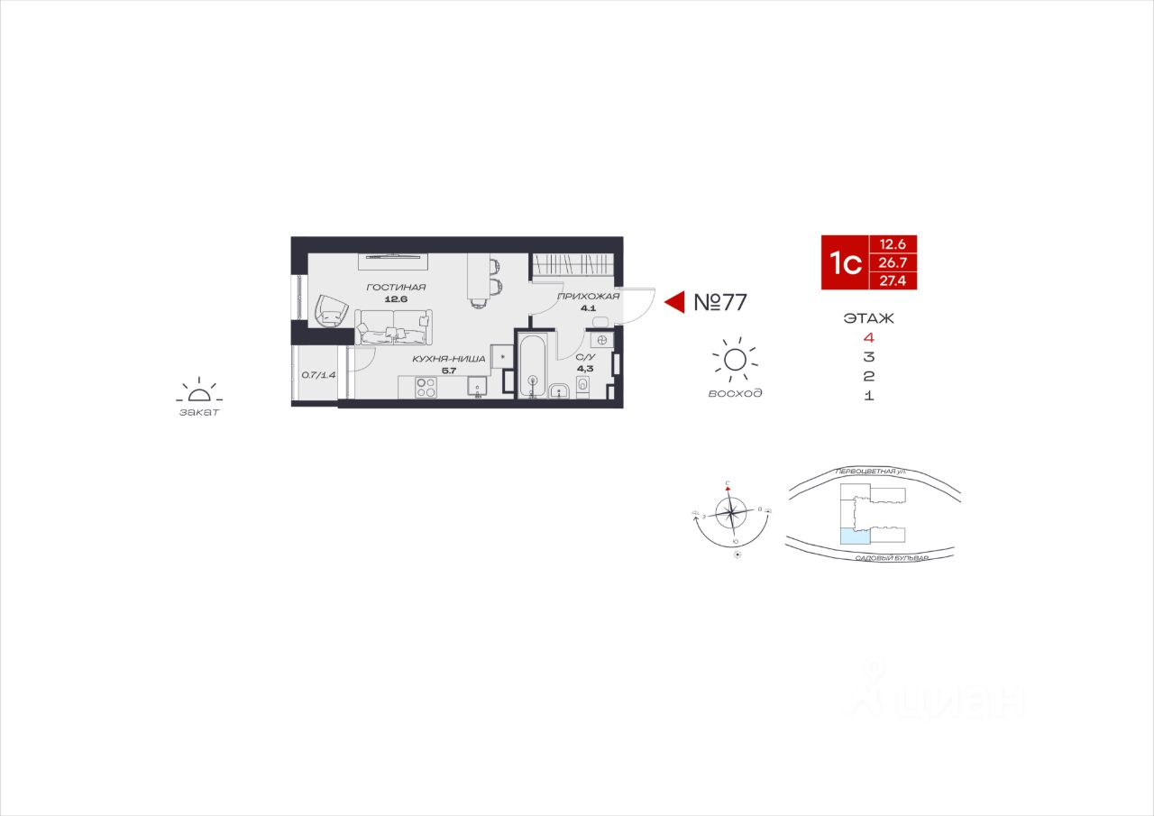 Общая площадь27,4 м2