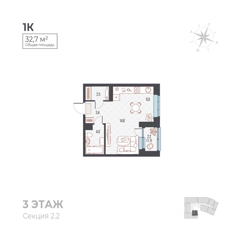 продам 1-к, Ивана Франко, 33 корп. 14 839 600 ₽