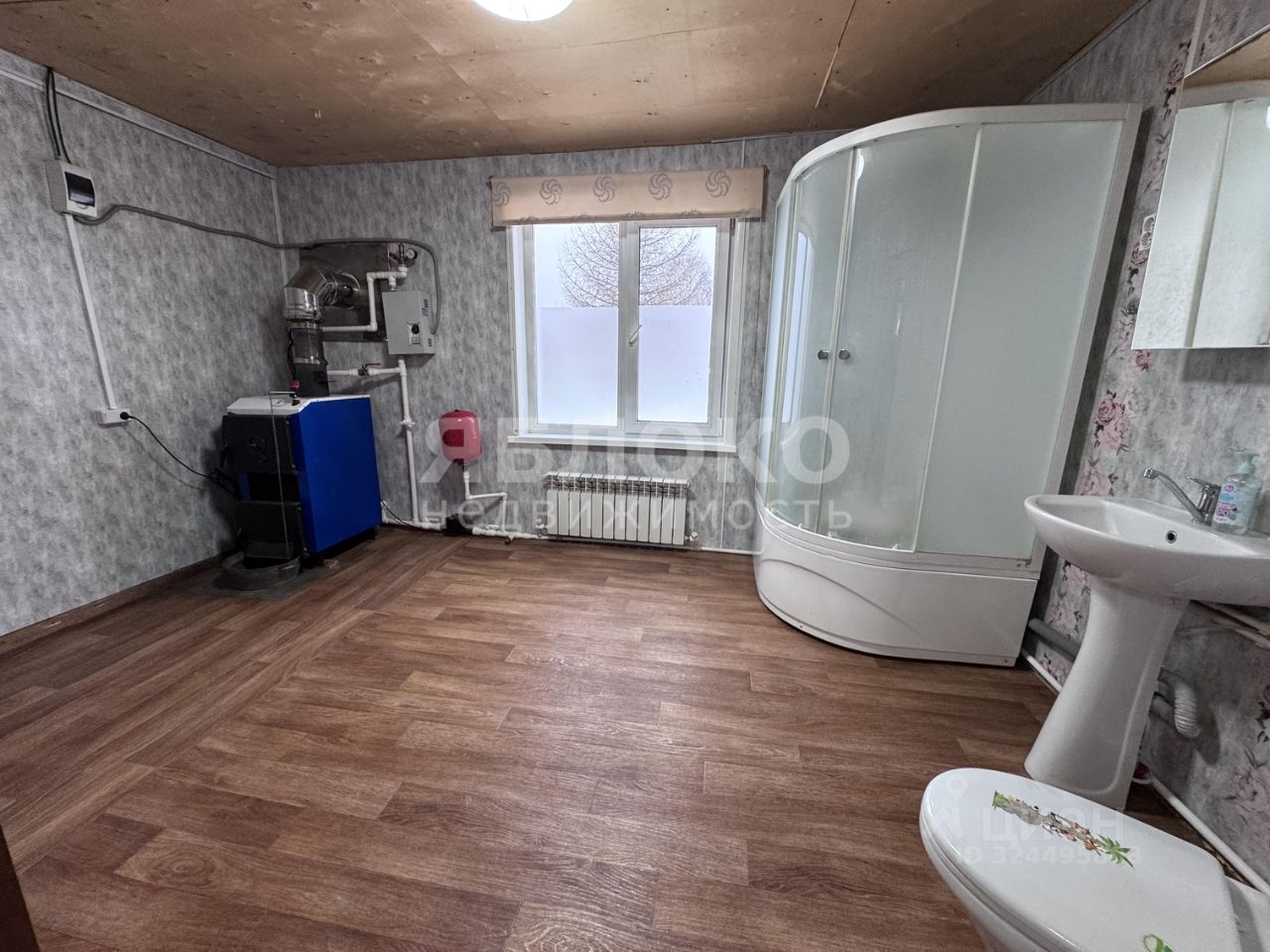 Коммуникации: - центральная вода - канализация, емкость на 8 кубов - отопление: дровяной и электрический котёл - бесперебойное электричество