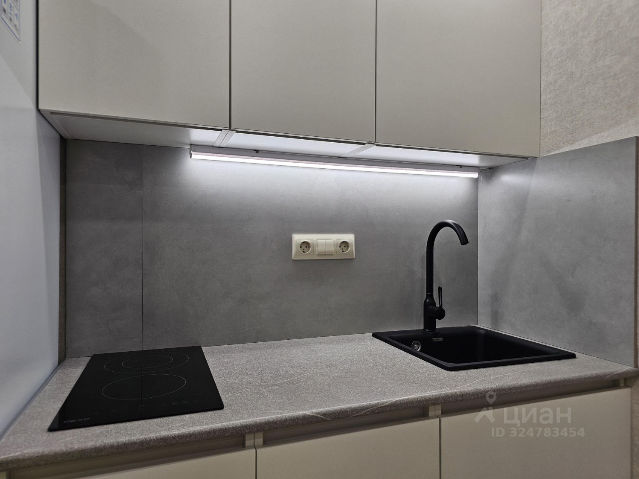 Остаётся всё, что вы видите на фото, а именно: кухонный гарнитур, варочная панель, сантехника, холодильник, стиральная машина, шторы, тюль. Всё абсолютно новое с чеками и на гарантии.