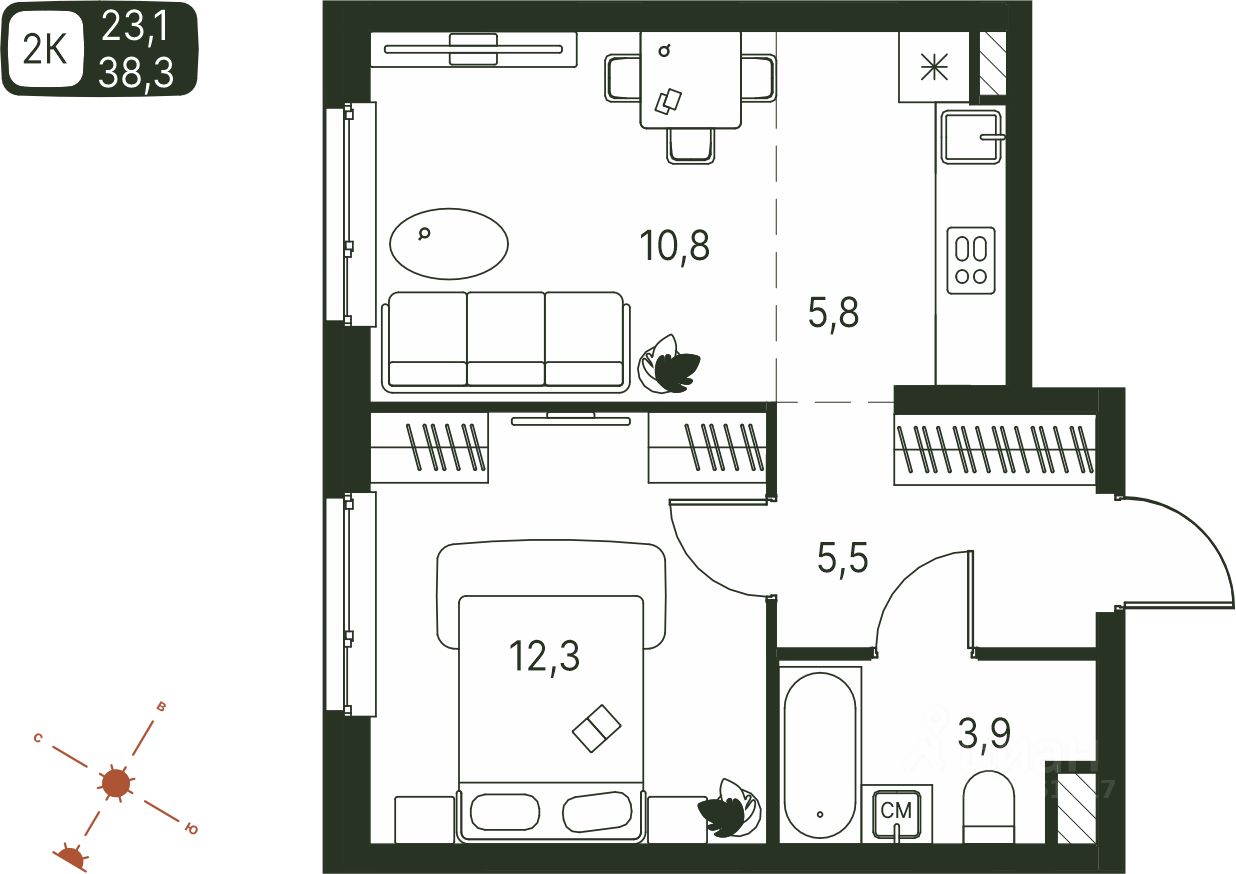 Продаётся студия в строящемся доме (Серебристая, 1), срок сдачи: IV-кв. 2027, общей площадью 38.3 кв.м., на 2 этаже. Теплые кварталы ''Погода'' — это новый грандиозный проект от создателя Спортивного микрорайона ''Ива'', федерального застройщика ''Девелопмент-Юг'' .