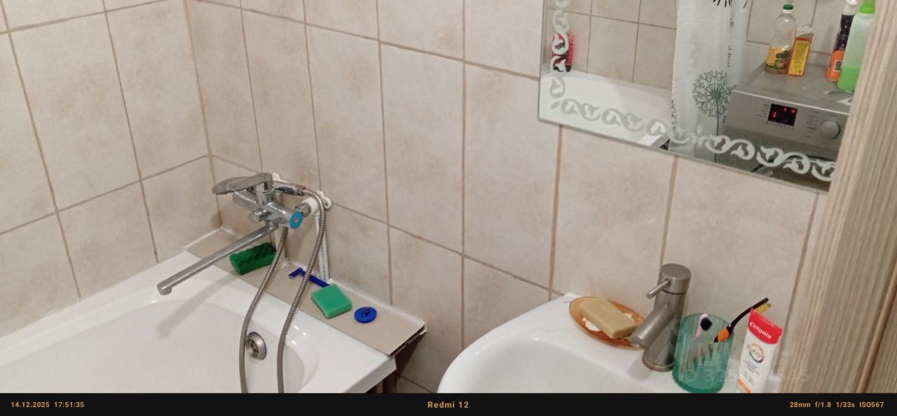 В квартире есть всё необходимое для комфортного проживания. В комнате установлена мебель, холодильник, телевизор и стиральная машина. Ванная комната оборудована ванной. Планировка включает отдельный санузел и балкон для приятного отдыха на свежем воздухе.